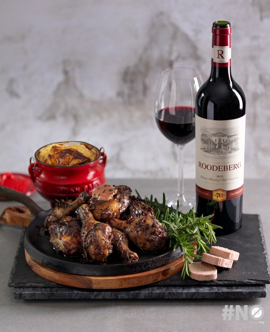 A rich, slow-cooked Coq au Vin with red wine butter, served with golden Dauphinoise potatoes bubbling away in a three-legged potjie – what we proudly call good old potato bake. Just like our rugby, it doesn’t need fancy words to be exceptional. French in name but fired with South African soul – just like Roodeberg.