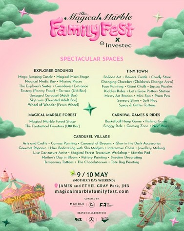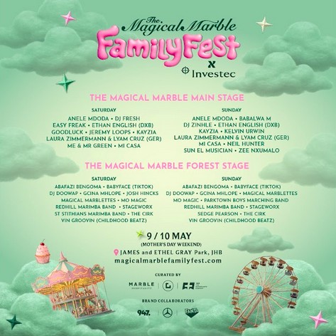 Headline partner Investec is once again bringing their flair to the festival and through its legacy programme, The Magical Marble Family Fest will transform joy into impact, supporting initiatives that unleash creativity long after the weekend ends.