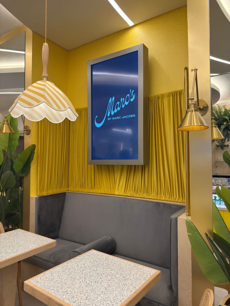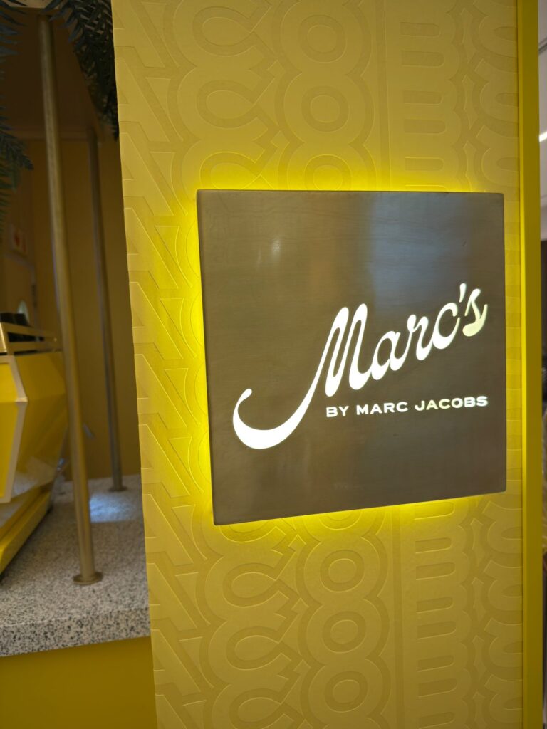 The menu at Marc’s by Marc Jacobs spans all-day dining, from waffles, bagels and build-your-own toasts at breakfast through to pasta, salads and sandwiches later in the day. A signature coffee programme and an artisan matcha-based iced drinks range complete the offering, alongside a considered mocktail list that carries the brand’s New York references throughout, from the Strawberry Social and Palm Avenue to the Runway Refresher and Little Red Dress.